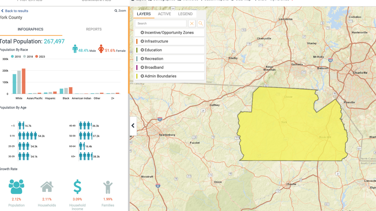This all-new level of knowledge management fundamentally improves our county’s efficiency in attracting new industrial and corporate facilities. The platform highlights data and assets both inside and outside the respective community, while a common interface, shared technology, and data fidelity ensures a seamless user experience. In fact, this technology is the industry standard used by professionals in the practices of site selection and corporate real estate.